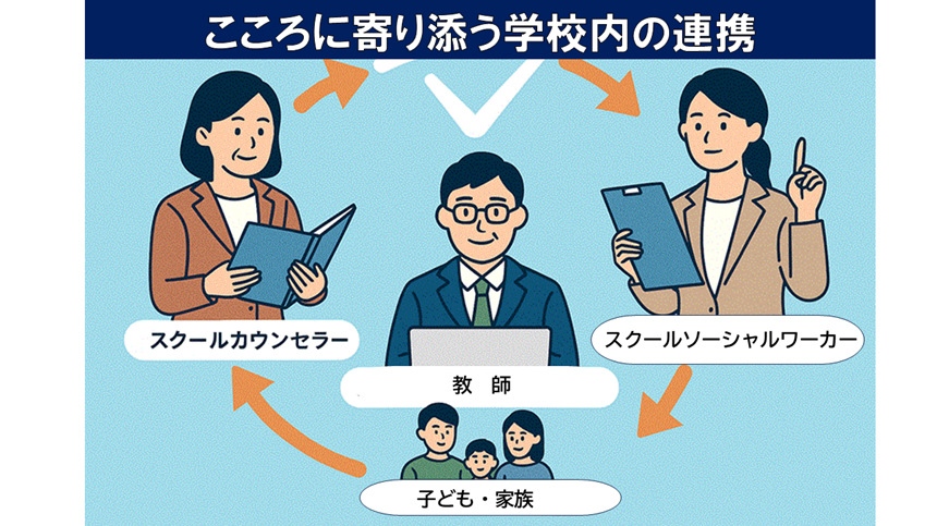 スクールカウンセラーとスクールソーシャルワーカーは、心と環境の両面から子どもを支える専門職です。