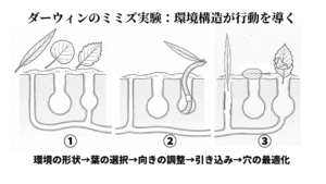 ミミズに複雑な脳はない。しかし、その行為は環境(穴や葉の形・硬さ)を的確に読み取ることで成立していた。